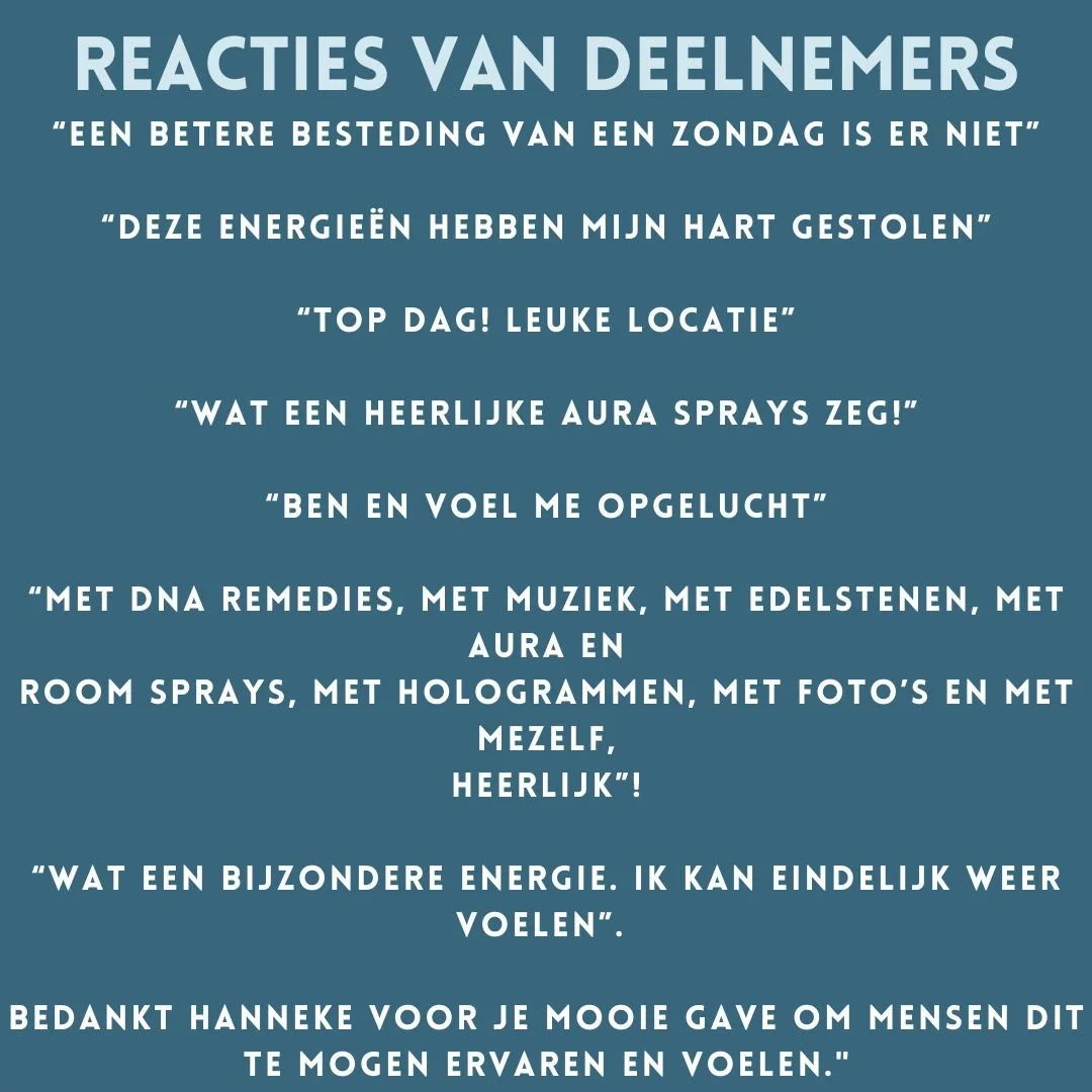 Hanneke neemt je mee op reis door de derde, vierde en vijfde dimensie en je gaat ervaren hoe je de bijbehorende energie en signalen kunt inzetten en herkennen door je zintuigen te verscherpen. Je gaat zien en voelen hoe je DNA-frequenties kunt toe te passen in je dagelijkse leven waardoor je spelenderwijs je energie verandert verhoogt. Zo word je minder meegenomen door de wereld en energie om je heen en kom je steeds beter in je eigen kracht te staan. Lichter leven vanuit je hart is het doel van deze dag.